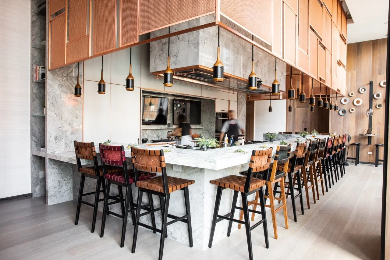 Our downtown Brooklyn venue is a true architectural feat featuring a stunning wraparound chef’s counter. Guests can sit near the windows, at the chef’s counter, or at the private 10-seat table inside the glowing wine library. The versatility of choosing from one or all of these spaces, combined with the city views, ensure that every event is a special occasion at Brooklyn Point.