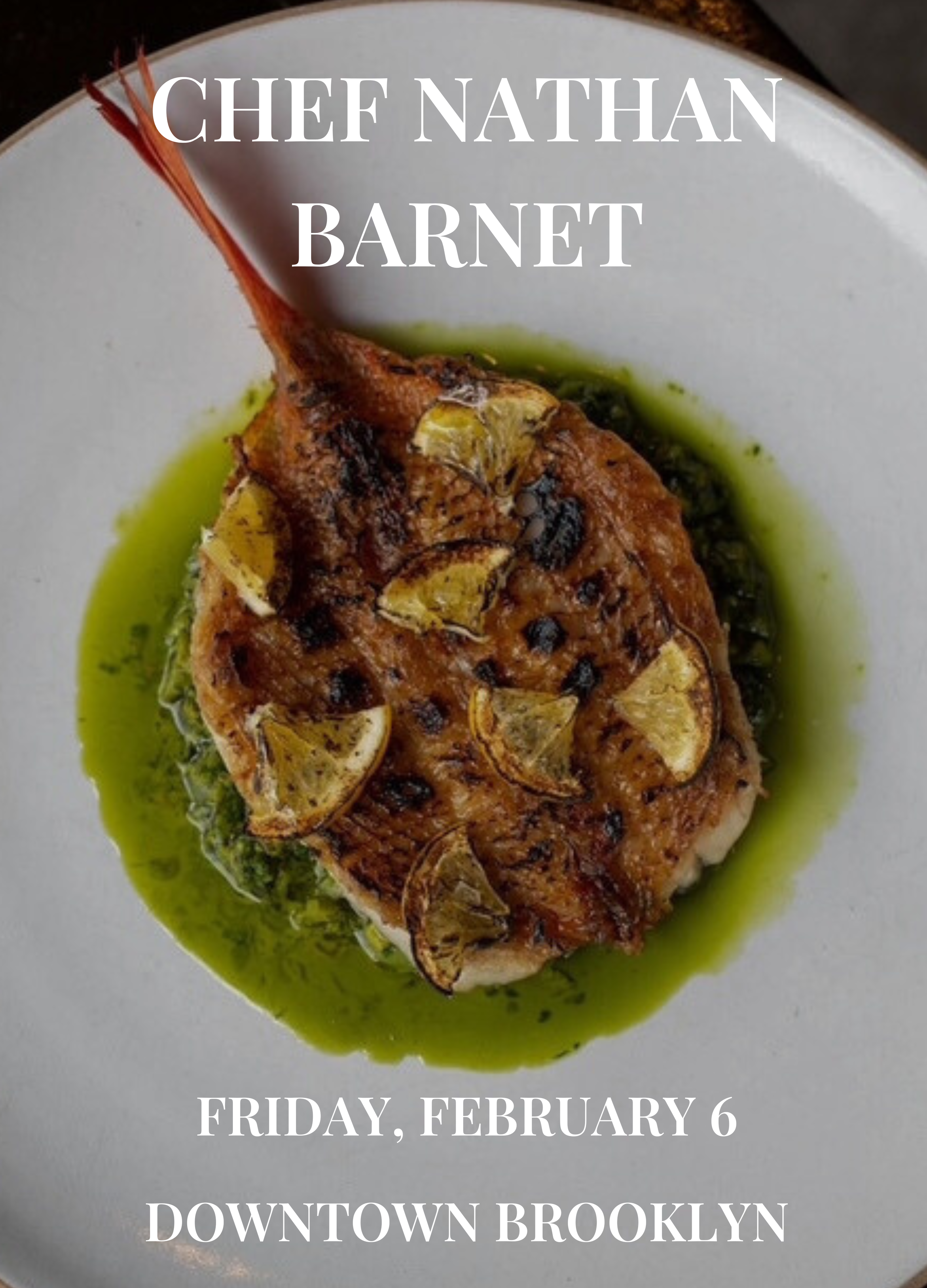 Originally from Western Massachusetts, Chef Nathan Barnet has been cooking since age 14 and built his career in technique-driven New York kitchens after training at Jean-Georges (⭐⭐). His experience includes JoJobyJean-Georges, 701West (John Fraser Group), North Fork Table & Inn, and serving as Chef de Cuisine at Iris, named one of Esquire’s Best New Restaurants in America. He later worked as R&D Chef and Culinary Director for Delicious Hospitality Group. His cooking is guided by seasonal, market-driven produce, blending French, Italian, Japanese, and Mediterranean influences.